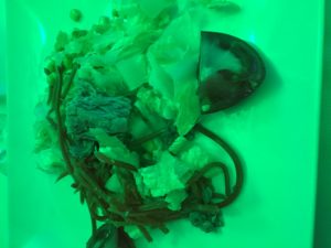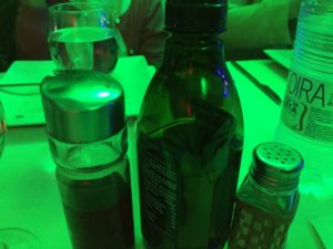 照明の影響で、かなり緑がかっています。しこも薄暗くて、サラダということはわかりますが、色がよくわかりませんでした。