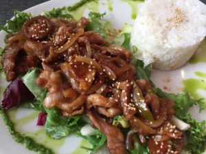 驚いたのは、Miso soup。丼大の器いっぱいのわかめの味噌汁が登場しました。お味の方は、日本のお店でも十分出せるくらい、普通に美味しかったです。照り焼きチキンもしかり。テリヤキソースでしっかり味付けがされて、臭みもなくとても美味しく頂きました。