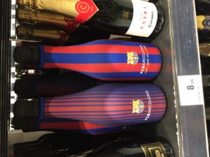 スペインと言えば、ワイン!ただし、フランスとは違い、一本何百万もするようなものは余りなく、安いものが多いとのこと。確かに日本では考えられないくらい安い(1.5ユーロなど)ものから置いてありました。そんな中、またとない記念になる銘柄を見つけました。サッカーファンなら、喉から手が出るほど欲しい?!FCバルセロナ仕様です。大のサッカー好きの息子が仲間内への土産に購入。1000円程度のものですので、味は普通でしょうが、土産物としてはこれ以上のものはないでしょう。