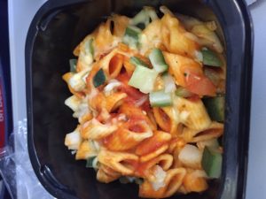 マドリード時間で、ちょうど夕食の時間に重なったからか、夜食にぴったりの少な目のボリュームでパスタが出てきました。なかなか美味しかったです。