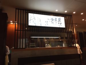 ご覧のように、厨房は、ライブキッチンとまではいきませんが、何となくうっすらと遠目に見えて活気を醸し出しています。